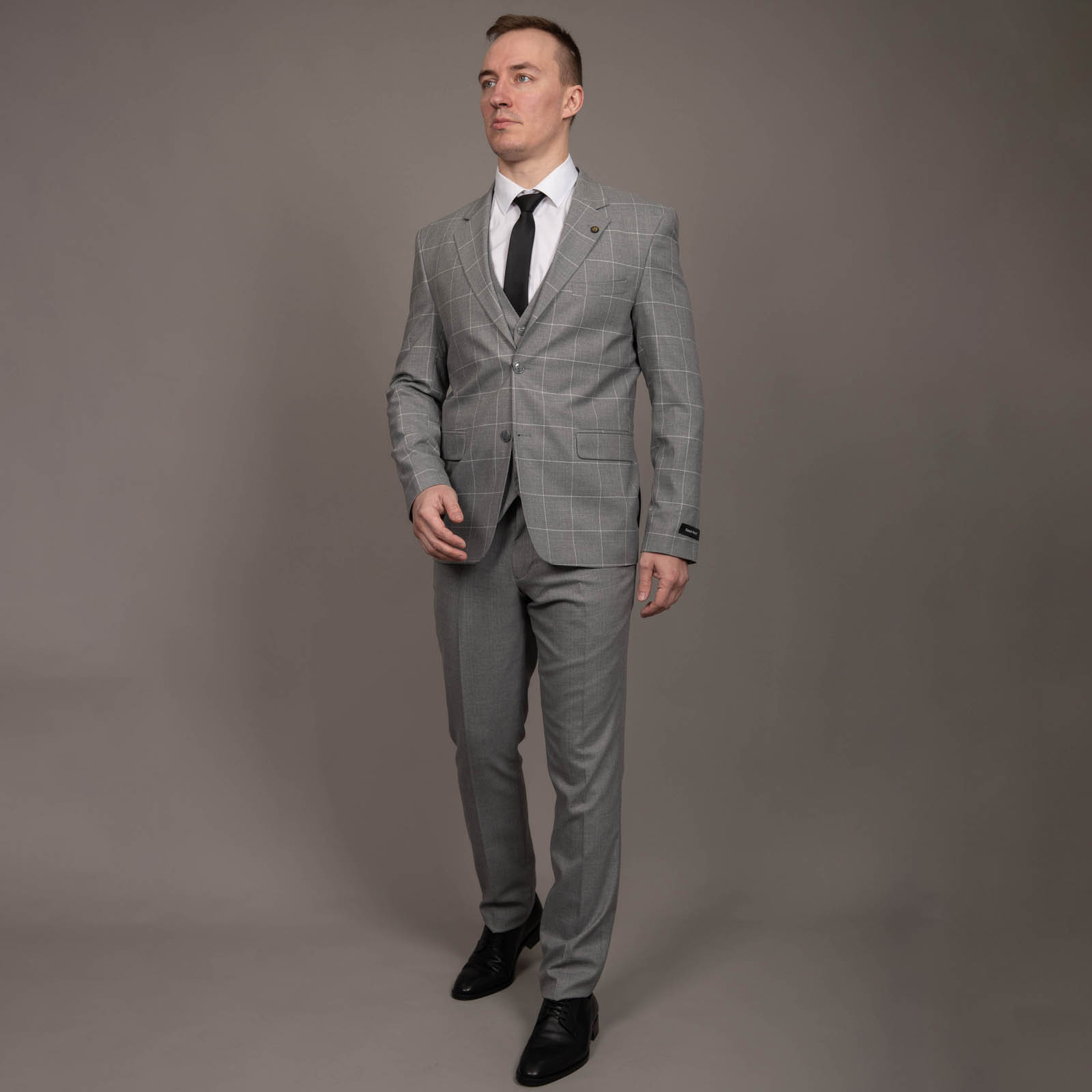 Классический серый костюм- прекрасная инвестиция в свой гардероб. Деликатный клетчатый узор на ткани пиджака – добавляет нотку индивидуальности, при этом не перегружая образ.