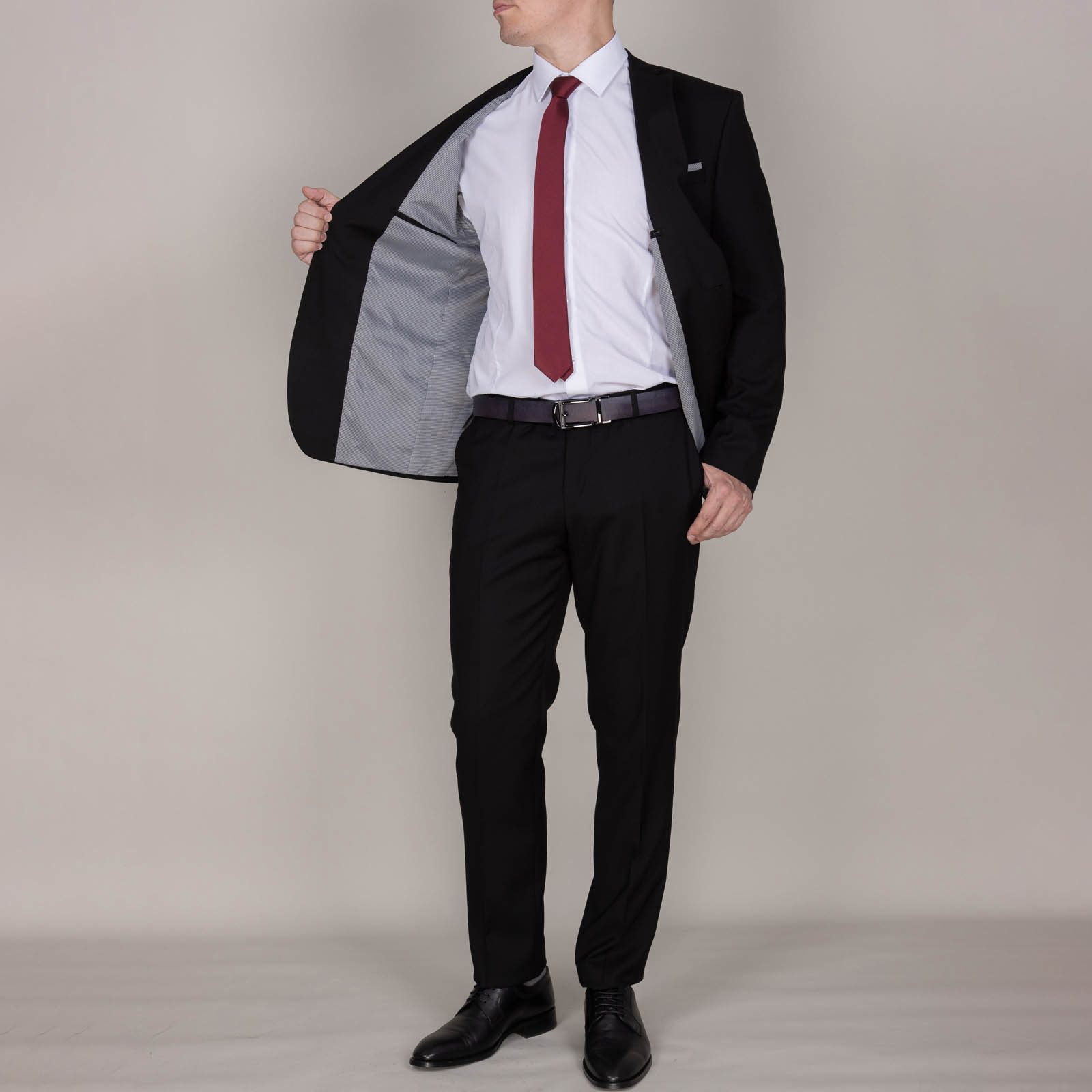 Черный мужской классический костюм супер прилегающего кроя — это эталон элегантности и стиля, который занимает особое место в гардеробе каждого мужчины.